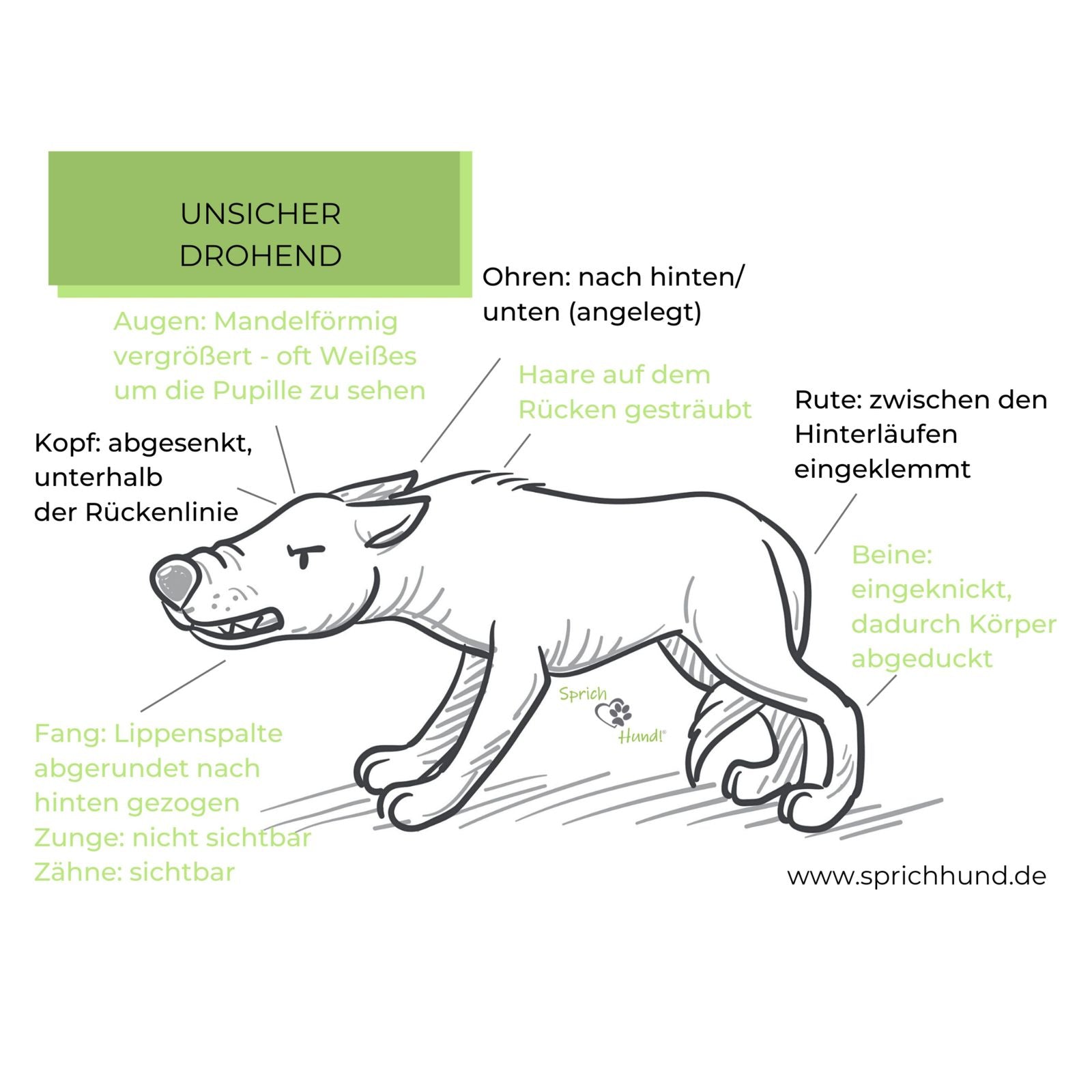 - Sprich Hund! Körpersprachie "unsicher drohend"