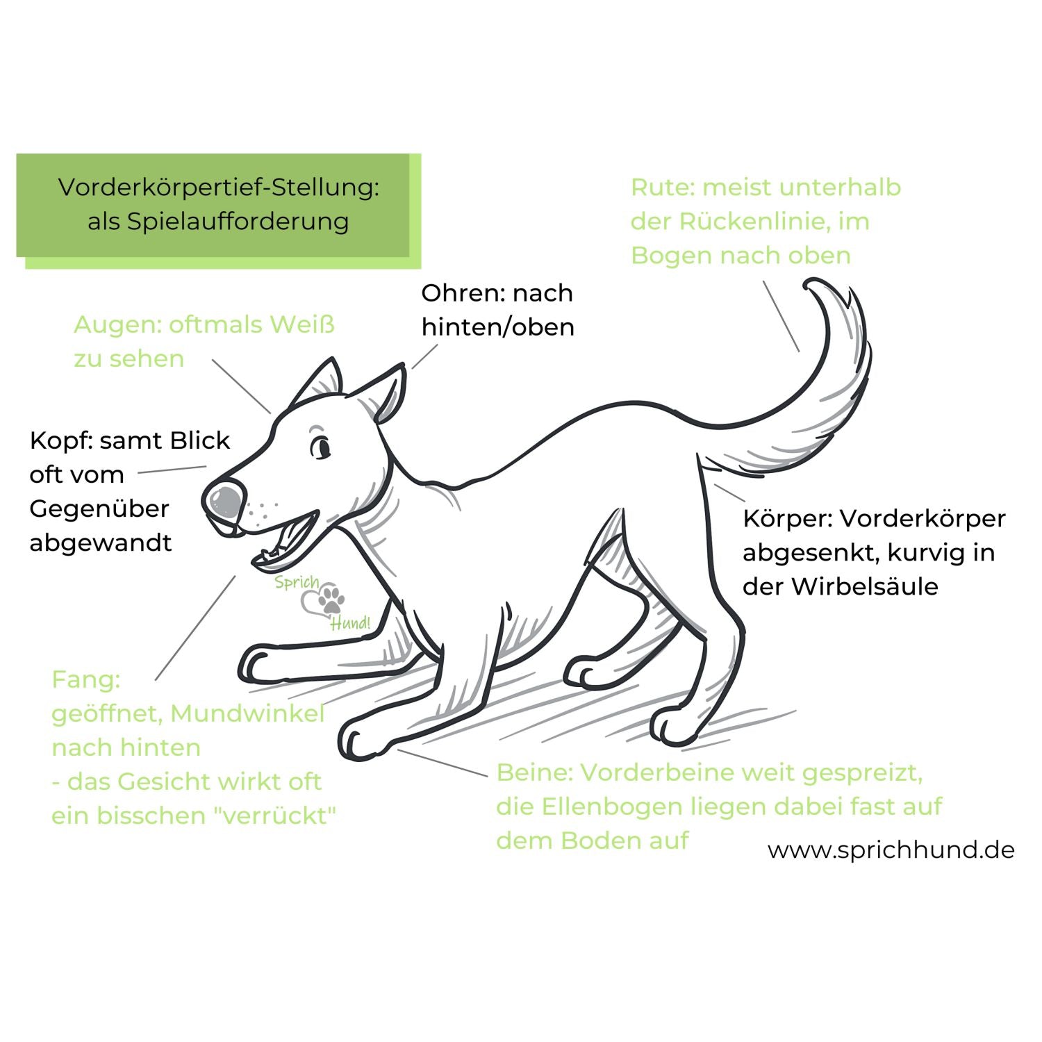 - Vorderkörpertief-Stellung: als Spielaufforderung