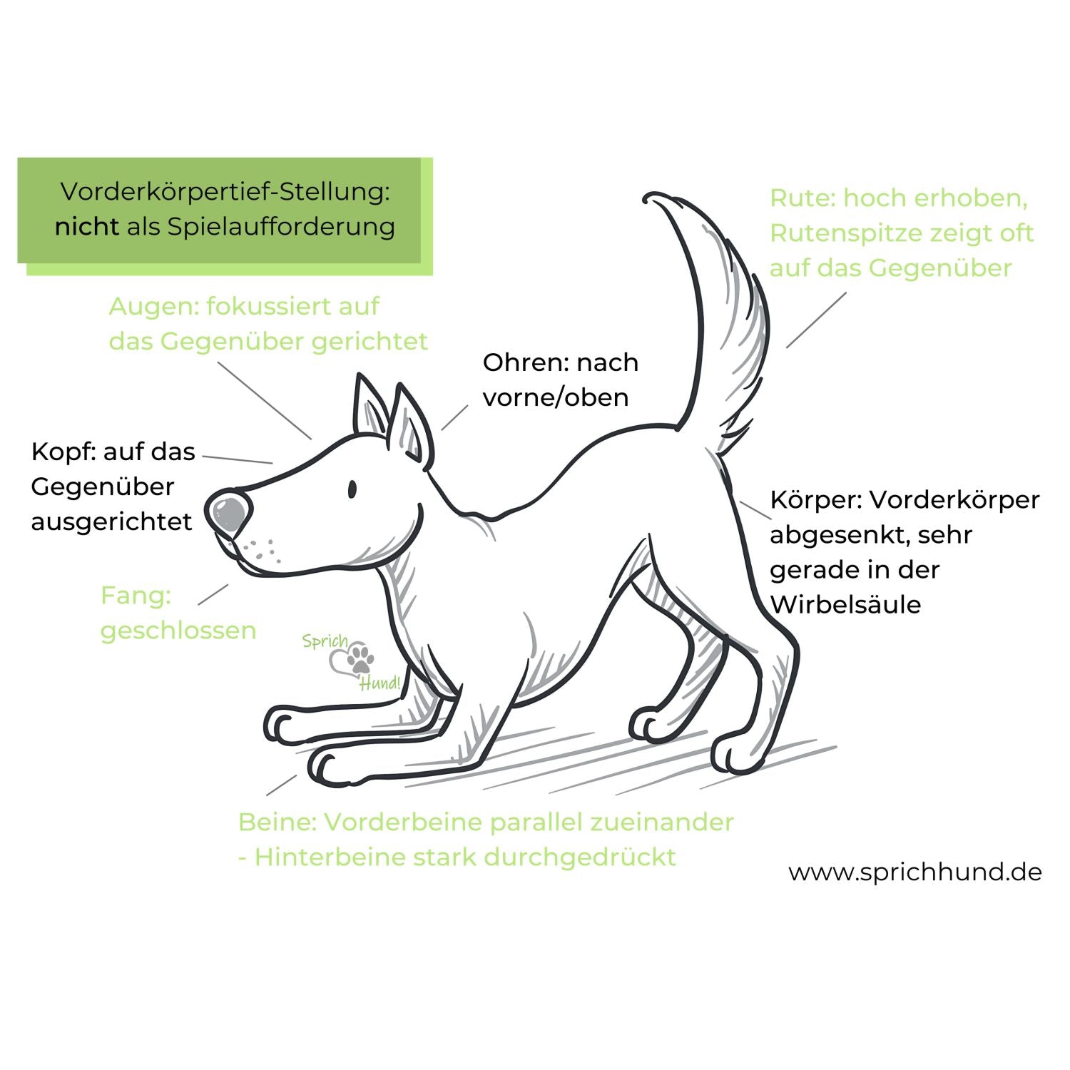 - Vorderkörpertief-Stellung: nicht als Spielaufforderung